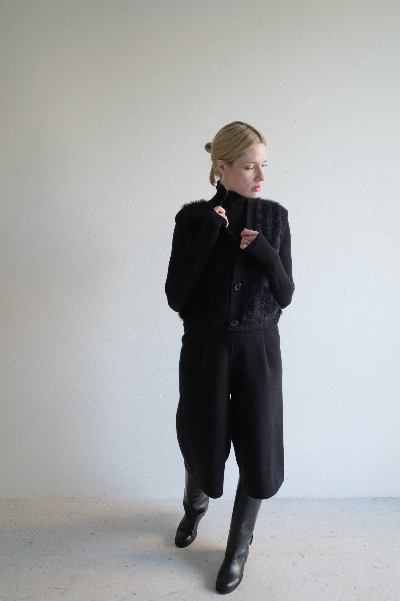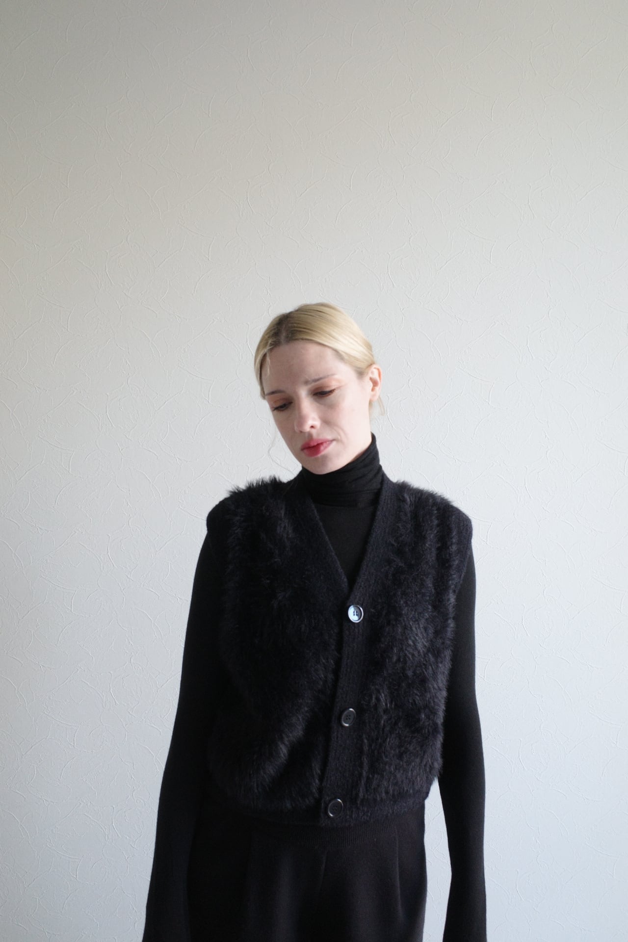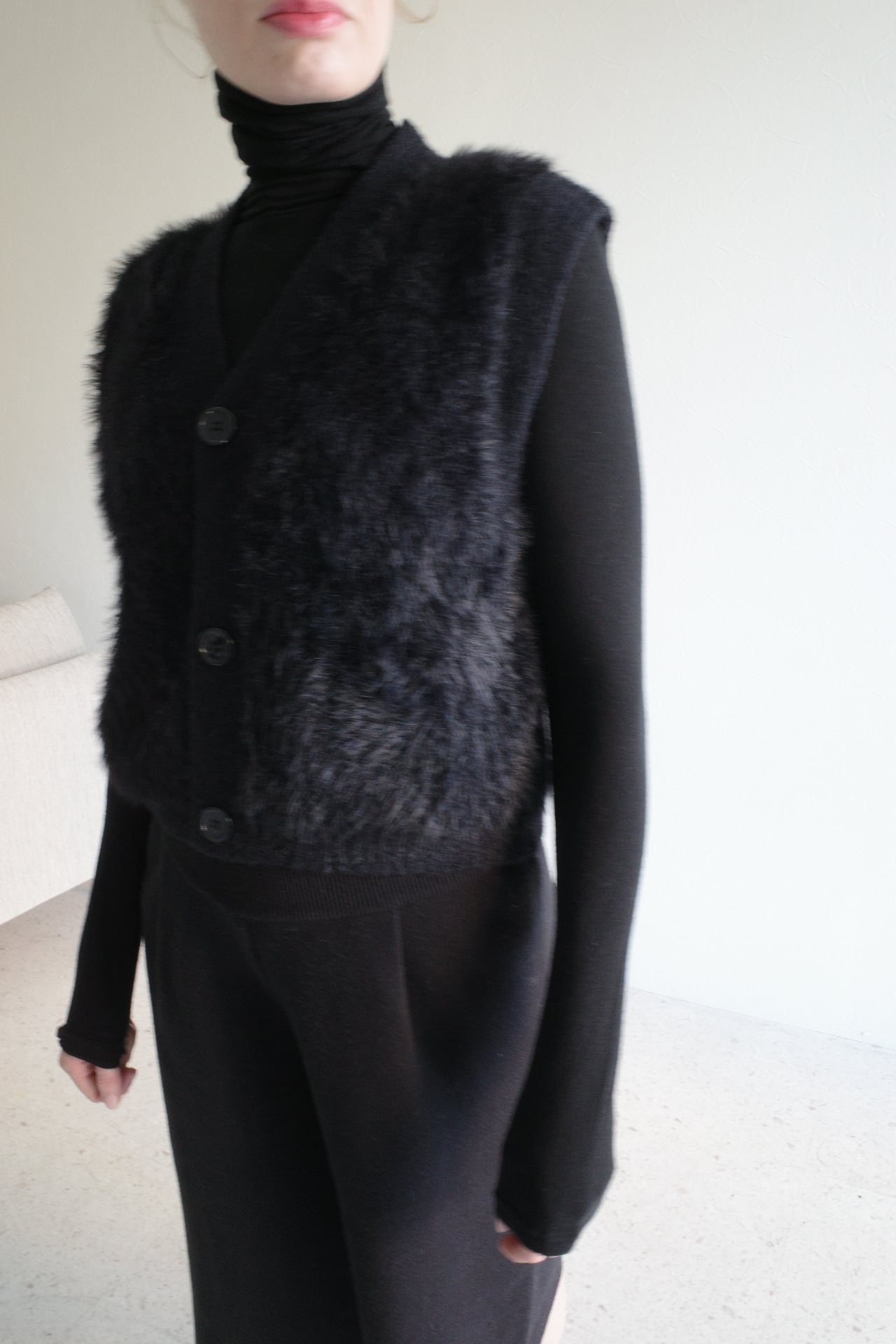 shaggy knit gilet (black)
