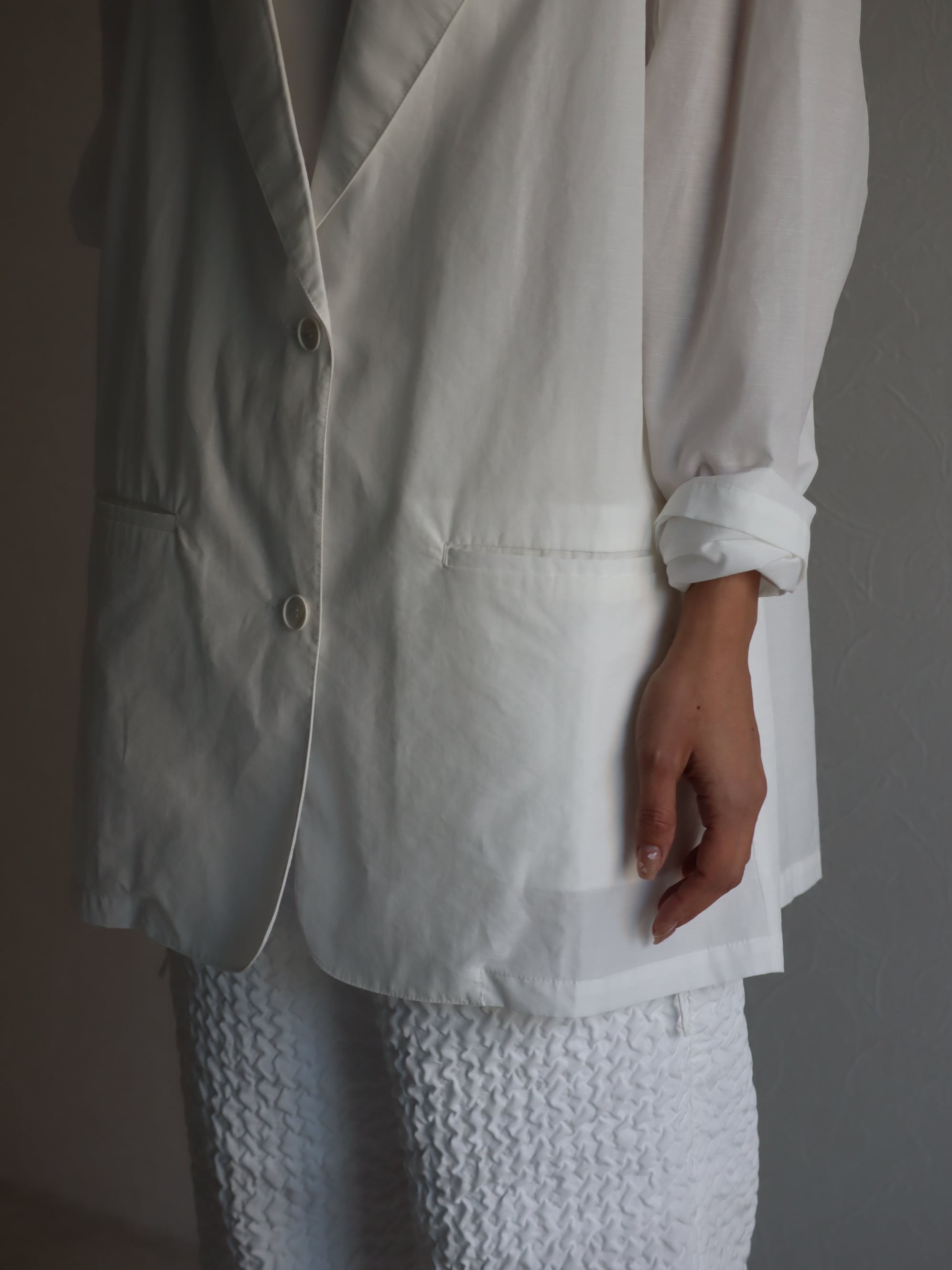 ☑︎程よいシアー感とナチュラルなフシ感が上品な薄手ジャケット