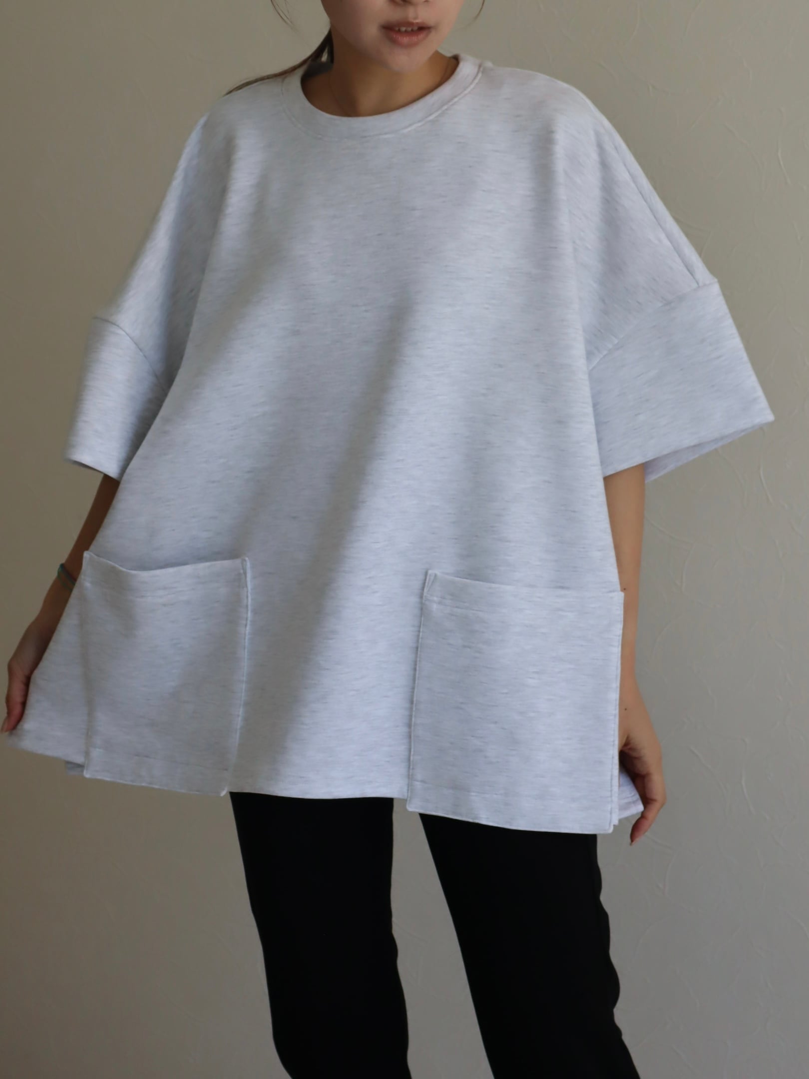 ☑︎お袖のコクーン感と大きめにあしらったポケットが特徴