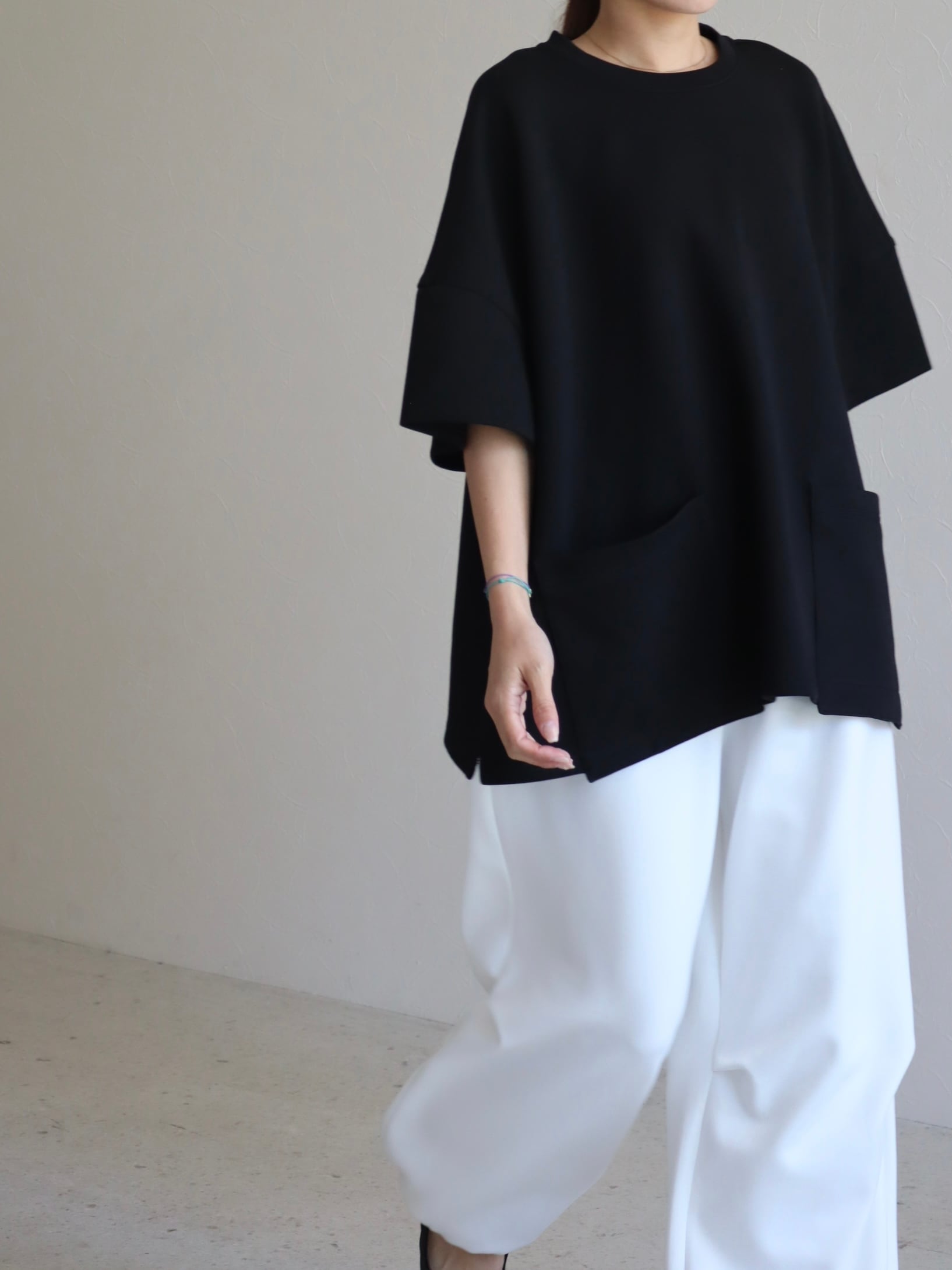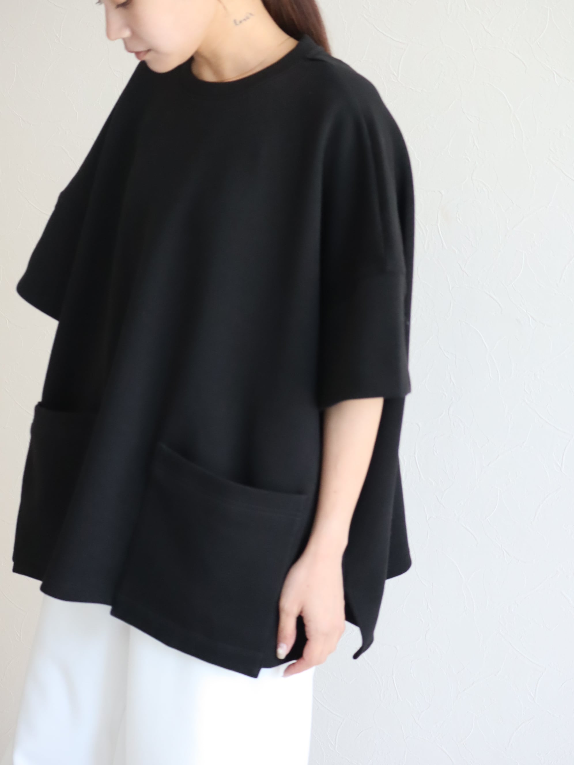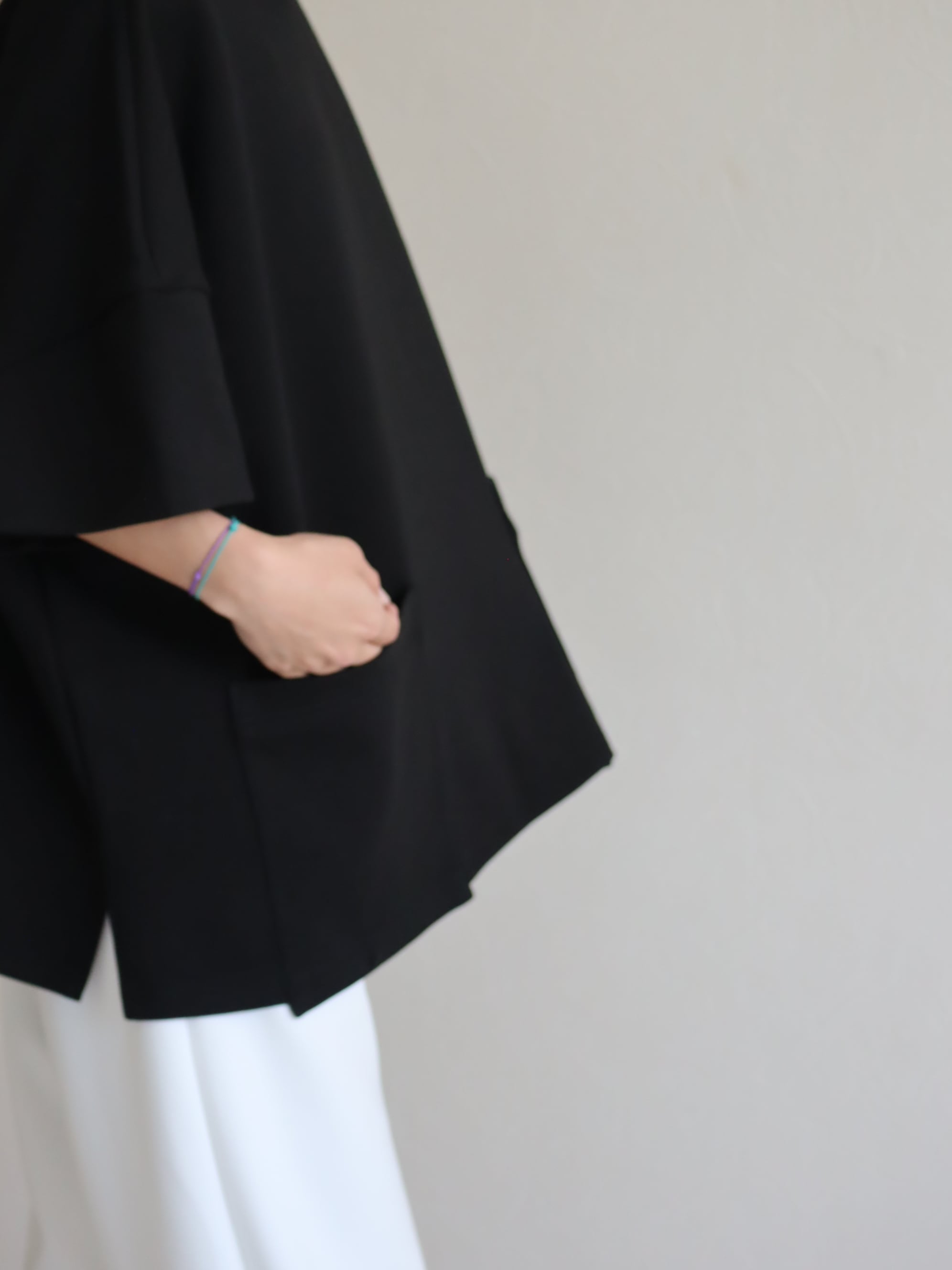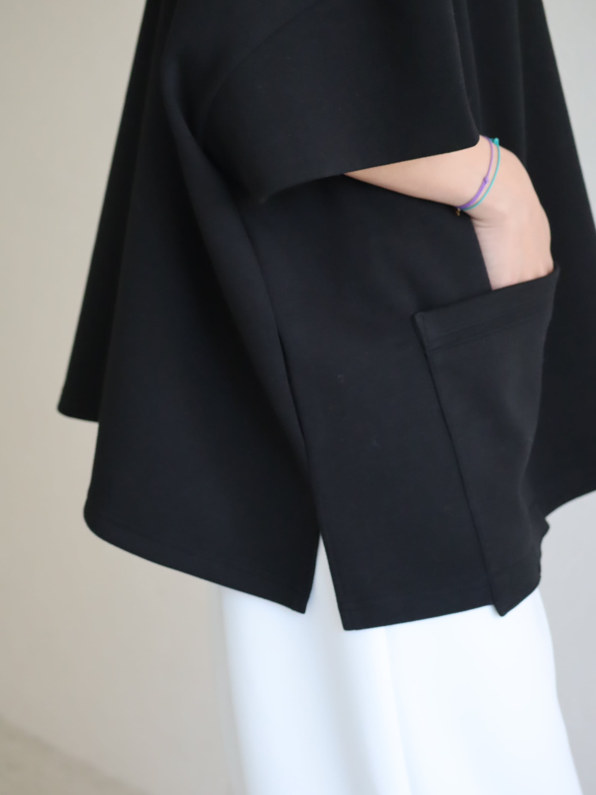 ☑︎お袖のコクーン感と大きめにあしらったポケットが特徴