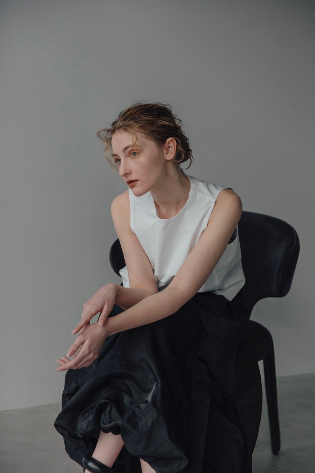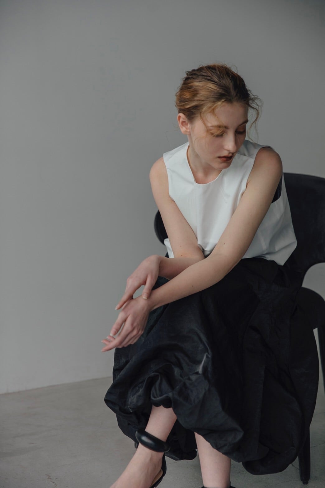 インナーを着用しオーガンジーからチラリと見せるのも着こなしの一つ。