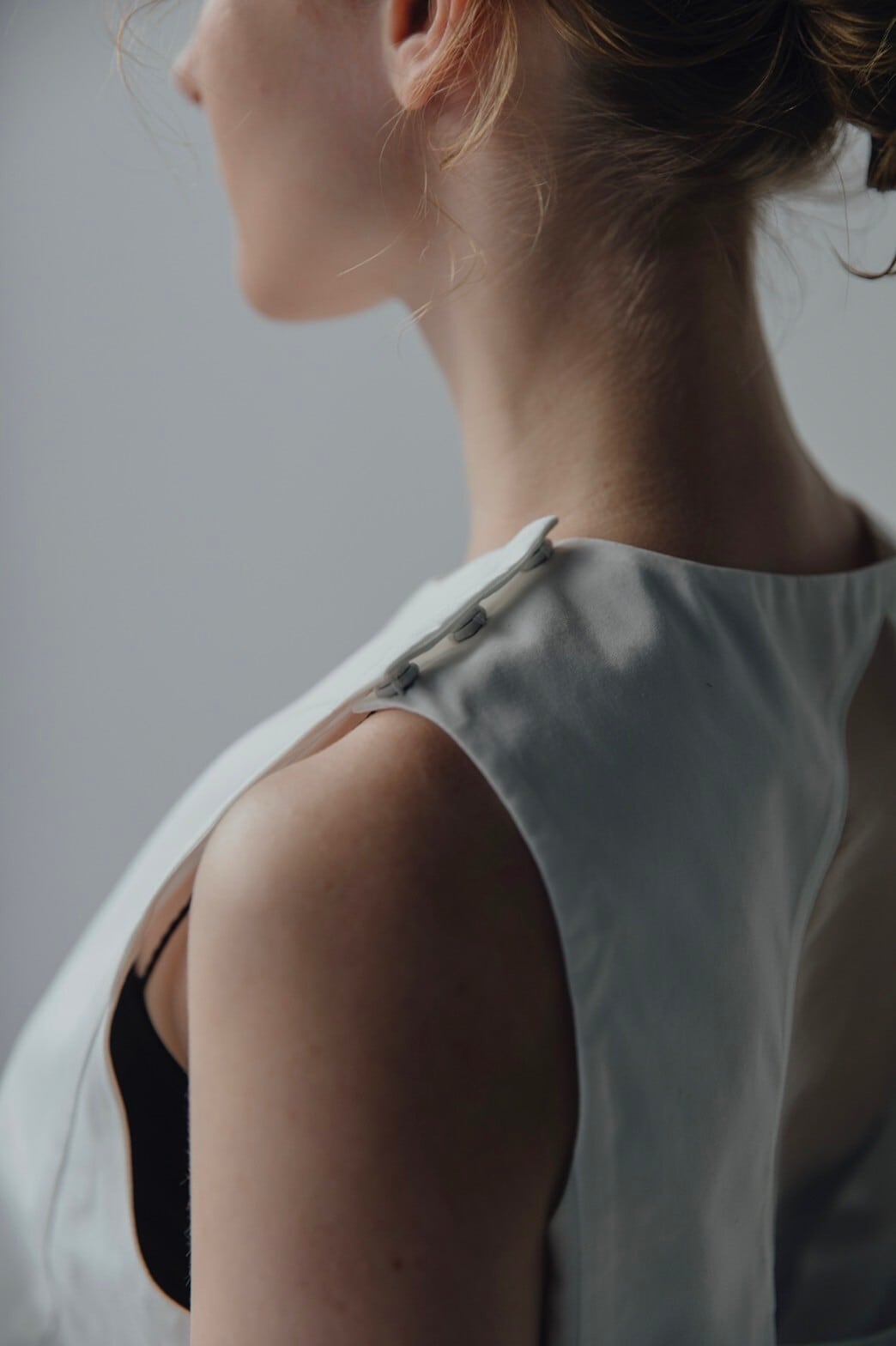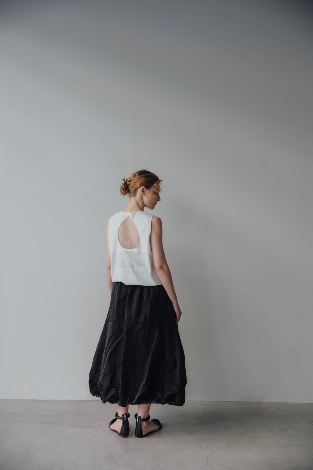 日本製のタイプライター生地に程よく肌見せを意識したバックオーガンジーが